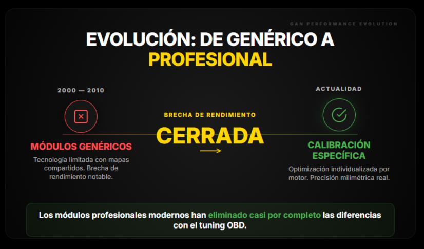 Por qué surgió este mito: Especialistas OBD tienen incentivo económico promocionar su método como único válido. Históricamente (años 2000-2010), módulos eran genéricos y limitados. Módulos profesionales modernos con calibración específica por motor han cerrado brecha rendimiento casi completamente.